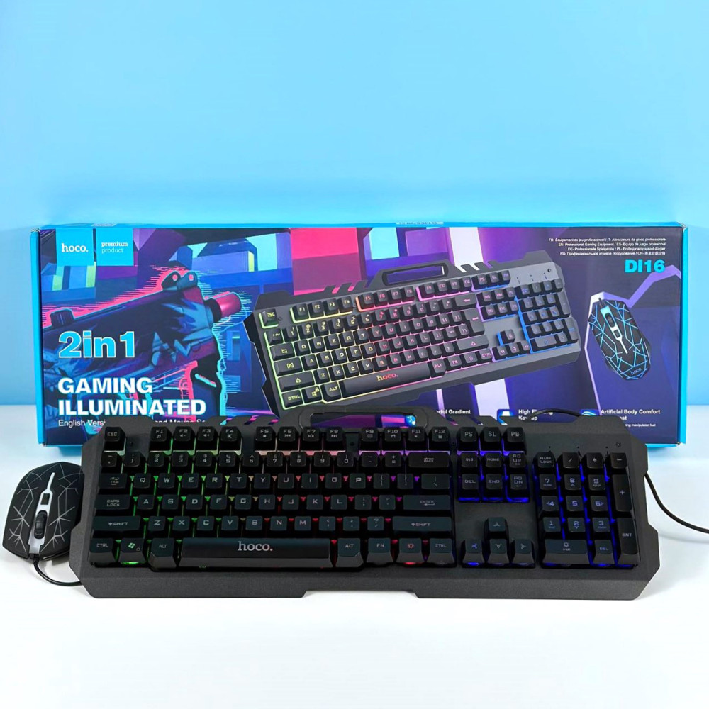 Клавиатура проволочная Hoco DI16 Gaming Illuminated + мышка проводная (English раскладка)